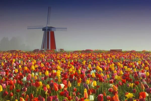 Poetry reader Sarah Bass on today’s poem: As someone from Holland, Michigan, this poem brought me back to the vast technicolor of those spring tulip fields. The conversation Schultz creates or remembers in this poem leans into humor and story, while the beautiful closing language, from “the slow-churning // windmill, white blades like crosses,” to “some were smokey as velvet dresses, / some dark as char” pulls the piece back into something delicate, like a wood mouse nestled in a garden bed. The child speaker isn’t contrarian—rather, they are audacious in the best way. Kids ask big questions and they aren’t afraid to reach for every possibility, and this poem allows its reader to access those memories of all they imagined and to challenge their present assumptions of the limited and the limitless. You can dare to “see tulips / in every color you can imagine, / every color there is.” I worked for several years as a flower farmer, and this poem feels like harvesting a tulip: choose one whose petals are still clasped tight, grasp the stem at a sturdy low point, and pull up the whole plant, bulb and all. The poem, like that tulip, is supple and bright. It shakes off the soil of doubt and beams into the sun.